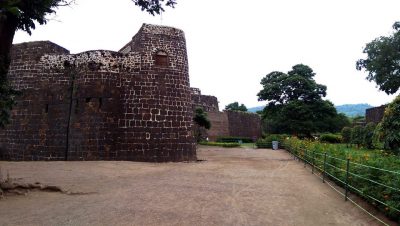 കോട്ടയുടെ സുരക്ഷയാണ് ഏറ്റവും എടുത്ത് പറയേണ്ടത്. ഡെക്കാണിലെ തന്നെ മികച്ച കോട്ടയാണിത്. സ്ഥിതി ചെയ്യുന്ന കുന്നിനെ ചുറ്റി വലിയൊരു കിടങ്ങുണ്ട്. ഒരുപാട് വാതിലുകളും പടിപ്പുരകളും കടന്ന് വേണം ഇവിടെയത്താന്. കിടങ്ങിന് കുറുകെ ചെറിയൊരു പാലം മാത്രമാണുള്ളത്. എത്ര വലിയ സൈന്യം വന്നാലും പാലം കടക്കാന് ഒരേ സമയം ഒരാള്ക്കേ കഴിയൂ. കിടങ്ങിലാണെങ്കില് നിറയെ മുതലയും. ഇന്നിവിടെ ഇരുമ്പില് തീര്ത്തൊരു പാലം നിര്മിച്ചിട്ടുണ്ട്.