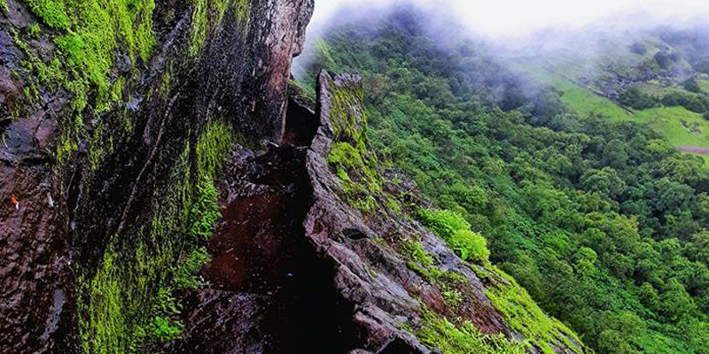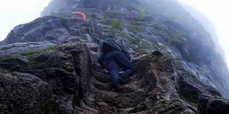 ഇനിയങ്ങോട്ടാണ് ശരിക്കും സാഹസീക ട്രിക്കിങ്. കോട നിറഞ്ഞ് മുകളിലേക്ക് കാണാന് കഴിയാത്ത വിധം ഹരിഹര് കോട്ട കോട്ടമഞ്ഞിനാല് കുളിച്ചിരുന്നു. മുകളിലേക്ക് കയറുമ്പോള് കൈകാലുകള് ശരിയായ വിധം ഓരോ അടിയും മുന്നോട്ട് വെക്കണം. നല്ല ചാറ്റല് മഴയും ഉണ്ട്. പടികളിലൂടെ വെള്ളം ഒഴികി വരുന്നുണ്ട്. വഴുക്കല് ഉണ്ടെന്ന് നമുക്ക് തോന്നും എന്നാലും ധൈര്യം ആയി മുന്നോട്ട് പോകാം. കൈകാലുകളുടെ ഓരോ മുന്പോട്ടുള്ള ചലനവും ശ്രദ്ധിച്ച് വെക്കുക.( വീണ്ടും ഓര്മിപ്പിക്കുകയാണ് ) ഒരിക്കലും താഴെക്കോ സൈഡിലേക്കോ നോക്കരുത്. നോക്കിയാല് ഒരു ചെറീയ ഭയം വരും എനിക്ക് വന്നത് കൊണ്ട് പറഞ്ഞതാ. അത് പോലെ തന്നെ താഴേക്ക് ഇറങ്ങുമ്പോഴും.