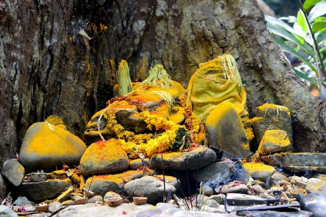 യാത്രയുടെ തുടക്കം തന്നെ നമ്മുടെ വഴികാട്ടിയെ പരിചയപ്പെടാം, പേര് മണികണ്ഠന്, ആദിവാസിയായ ഇദ്ദേഹം കാണി സമുദായക്കാരനാണ്, കാണി സമുദായത്തില് പെട്ടവരാണ് ഇവിടെ ഗൈഡ് ആയി പോകുന്നവര് എല്ലാം. അവര്ക്ക് ഈ കാട് മുഴുവന് മനപാഠമാണ്. ഈ യാത്രയുടെ ഇന്നത്തെ ലക്ഷ്യ സ്ഥാനം അതിരുമലയാണ്, ബോണക്കാട് നിന്നും 14 കിലോമീറ്റര് ആണ് ദൂരം അതിരുമലയിലേക്ക്, ബോണക്കാട് കഴിഞ്ഞു പിന്നെ 4 ക്യാമ്പുകള് ആണ് അതിരുമല എത്തുന്നതിന്ന് മുന്പ് ഉള്ളത്, പരിചയപ്പെട്ടു കഴിഞ്ഞപ്പോഴേക്കും ഏകദേശം ഒന്നര കിലോമീറ്റര് പിന്നിട്ടു രണ്ടാമത്തെ ക്യാമ്പ് ആയ ലാത്തിമൊട്ട എത്തി, ഇവിടെ ആയിരുന്നു പഴയ പിക്കറ്റ് സ്റ്റേഷന്, അതിന്റെ അവശിഷ്ടങ്ങളും ആനയുടെ ആക്രമണത്തില് നിന്ന് രക്ഷനേടാന് ഉണ്ടാക്കിയ ട്രെഞ്ചും ഇപ്പോഴും ഇവിടെ കാണാം. ഇവിടെ നിന്നും വലത്തോട്ട് തിരിഞ്ഞു അല്പ്പം കാട്ടിലേക്ക് പോയാല് മനോഹരമായ ‘ബോണ വാട്ടര്ഫാള്സ് ‘ കാണാം എന്ന് ഗൈഡ് പറഞ്ഞു, പക്ഷെ ഇപ്പോള് പെര്മിഷന് ഇല്ലാത്തതുകൊണ്ട് കാണാന് പറ്റിയില്ല, ലാത്തിമൊട്ട പിന്നിടുമ്പോള് ആദ്യം തന്നെ മലദേവനെ വണങ്ങി തിരിയിട്ട് വേണം പോകാന് എന്നാണ് വിശ്വാസം. ചെറിയ മരച്ചുവട്ടില് ഒരു ശിലയും വിളക്കും പല വിധ കാണിക്കകളും കാണാം, ഇവിടെ തിരി വെച്ച് മലദേവനു കാണിക്ക വെച്ചിട്ടാണ് ഭക്തര് പ്രയാണം തുടങ്ങുന്നത്, ഇവടന്നങ്ങോട്ട് വിവിധ തരം കാടുകളും, കാട്ടു വഴികളും പിന്നിട്ടു വേണം മുന്നോട്ട് ഗമിക്കാന്.