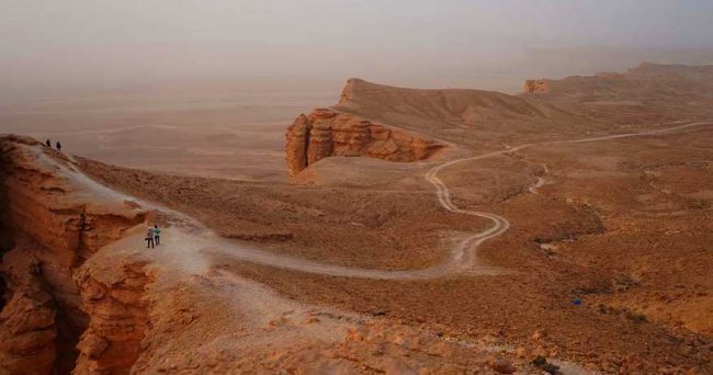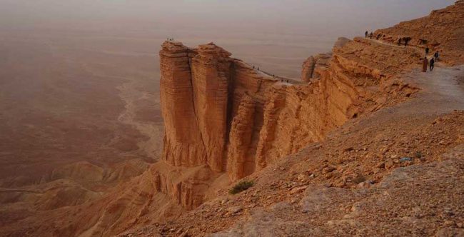 റിയാദില്‍ നിന്നും ഏറെ അകലെയല്ലാത്ത ഈ ദുനിയാവിന്റെ മുനമ്പ് എന്നറിയപ്പെടുന്ന സ്ഥലത്തേക്ക് ഒരു ചെറുയാത്ര ചെയ്യണം എന്ന് ഏറെക്കാലമായി ആഗ്രഹിക്കുന്നതാണ്. സഞ്ചാരിയുടെ ഒരു അമരക്കാരനായ സദഖത്തുള്ള ഭായിയുമായുള്ള കൂടിക്കാഴ്ച്ച ഈ സ്ഥലത്തേക്കു പോകാനുള്ള കൂടുതല്‍ പ്രചോദനമായി. സഞ്ചാരി ട്രാവല്‍ ഫോറത്തില്‍ ആഷിദ് എന്ന ചെറുപ്പക്കാരന്‍ എഡ്ജ് ഓഫ് ദി വേള്‍ഡില്‍ പോകാനുള്ള അടങ്ങാത്ത ആഗ്രഹം പങ്കുവെക്കുകയും അതിനായുള്ള സഹായ അഭ്യര്‍ത്ഥനയും കൂടി ആയപ്പോള്‍ എത്രയും പെട്ടന്ന് അവിടേക്ക് പോകാനുള്ള ചിട്ടവട്ടങ്ങള്‍ തയാറാക്കി. ഒരു സഞ്ചാരിയെ അദ്ദേഹത്തിന്റെ സ്വപ്നത്തിലുള്ള സ്ഥലത്തേക്ക് എത്തിച്ചേരാന്‍ സഹായിച്ചാല്‍ ലഭിക്കുന്ന സന്തോഷം അത് വേറെ തന്നെയാണ്.