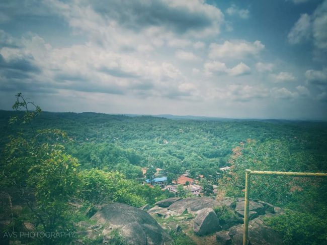 ഇവിടേക്ക് ട്രക്ക് ചെയ്തു പോകുന്നതിന് മുപ്പതുമിനിറ്റോളം ഏടുക്കും. പ്രകൃതിഭംഗിയാല്‍ മനോഹരമായ ഒരിടം അത് പോലെ തന്നെ മരുതിമലക്കുന്നിനു മുകളില്‍ സ്ഥിതിചെയ്യുന്ന കാവ് , കാവുകള്‍ നമ്മുക്ക് അറിയമല്ലോ പ്രകൃതിയുടെ ആവാസ വ്യവസ്ഥ നില നിര്‍ത്തുന്നതില്‍ വഹിക്കുന്ന പങ്ക് . മനോഹരമായ ആകാശ കാഴ്ചകള്‍ ആണ് ഇവിടെ നിന്നും ലഭ്യമാക്കുന്നത് . മേഘങ്ങള്‍ പരസ്പരം എന്തൊക്കെയോ പറയുന്നുണ്ട് , ഒന്ന് ചെവി കൂര്‍പ്പിച്ചാല്‍ അവരുടെ സ്വകാര്യം പറച്ചില്‍ നമ്മുക്കും കേള്‍ക്കാം. മരുതിമലയിലെ കഥയിലെ കഥയുടെ ഉള്‍നാമ്പ് സഞ്ചാരിയായ ഞാന്‍ കണ്ടെത്താന്‍ ഒന്ന് ശ്രമിച്ചു. പക്ഷേ ആ കഥയുടെ പൂര്‍ണ്ണതയില്‍ എത്തിച്ചേരാന്‍ കഴിഞ്ഞില്ല .കഥയില്‍ നിന്നും കഥകളിലേക്ക് എനിക്ക് ആകാശ സ്വപ്ന യാത്ര ചെയ്യേണ്ടി വന്നു . അതു പോലെ ഇവിടുത്തെ ഇളം കാറ്റ് എന്റെ ശരീരത്തെ തഴുക്കുമ്പോള്‍ ഇന്ദ്രജാലക്കാരന്‍മ്മാരായ മേഘങ്ങള്‍ എങ്ങോ പോയി മറയുന്നത് കാണാം .