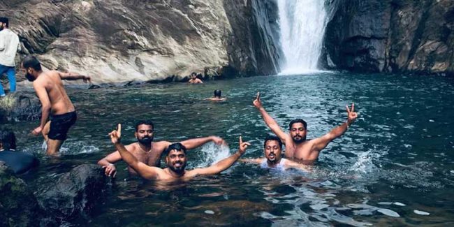 കട്ടിക്കയം വെള്ളച്ചാട്ടം, തപ്പിതടഞ്ഞു അവിടെ എത്തിപ്പെട്ടെങ്കിലും സംഭവം കിടിലം. മ്യാരക വ്യൂ…വെള്ളചാട്ടം കണ്ടാൽ പിന്നെ പറയണോ. വിസ്തരിച്ചൊരു മുങ്ങിക്കുളിയും അങ്ങ് പാസ്സാക്കി ….വെള്ളം കണ്ടപ്പോ ഇറങ്ങാൻ നല്ല സുഖം… പക്ഷെ കേറാൻ നന്നേ പണിപ്പെട്ടു. പടിക്കെട്ടുകൾ ഇറങ്ങി കുറെ താഴത്തേക്കാണ് ഈ വെള്ളച്ചാട്ടം….എങ്കിലും തെറ്റില്ല… കുളി ഉഷാറാക്കി. കൂടെ എല്ലാചങ്കുകളും… കുറെ നേരം കൂടി അവിടെ ചിലവഴിക്കാൻ തോന്നിയെങ്കിലും അഡ്മിൻ പാനലിന്റെ നിർദേശം എത്തി… സമയം കൂടുതലായി കേറിക്കോ എന്നും… വളരെ നിരാശയോടെ കേറിയെങ്കിലും ആ വെള്ളത്തിൽ നിന്നും കേറുവാൻ മനസ്സുവന്നതേ ഇല്ല എന്നുവേണം പറയാൻ… അത്രക്കും സൂപ്പറാണ്…..